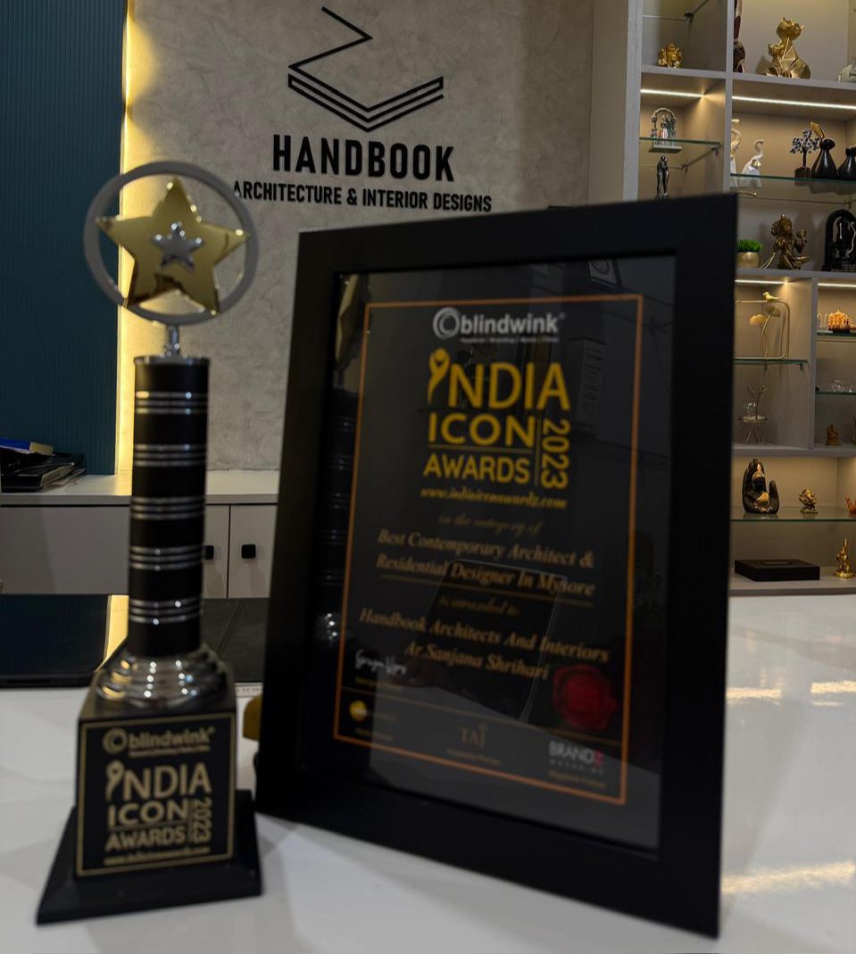 Handbook Architects and Interiors, led by Ar. Sanjana Shrihari, proudly received the India Icon Award 2023 by Blindwink for Best Contemporary Architect & Residential Designer in Mysore.This recognition reflects our strength in modern, functional residential design and our commitment to innovation, quality, and client satisfaction.